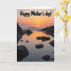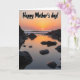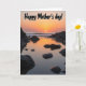 Designed with a serene coastal scene at dawn or dusk, this card shows rugged dark rocks framing calm water under a low, glowing sun on the horizon ❤️. Warm oranges and soft peach tones spread across the sky and reflect in tide pools, creating a gentle, affectionate mood like a quiet moment shared side by side. In the foreground, textured stones sit partly submerged, their shadowy shapes guiding the eye toward the open sea and distant waves. The water shifts from deep, cool blues in the shaded areas to golden light where the sun touches the surface, adding a tender contrast. Across the upper sky area, the message “Happy Mother’s Day!” appears in a flowing, decorative style, set in a dark color that stands out against the bright clouds 🌼. The letters sit centered near the top, leaving the sun and horizon unobstructed for a balanced look. Subtle ripples in the midground catch highlights like small glints, as if the ocean is softly responding to the light. The round sun rests exactly at the horizon line, with a thin golden path of reflection stretching toward the bottom edge.