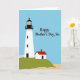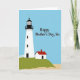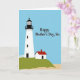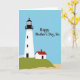 This card shows a calm seaside scene with a tall white lighthouse on the left, topped by a black lantern and railing beneath a smooth blue sky. Beside it sits a small house on a green hill, its red roof and single dark doorway giving the setting a cozy, cared-for feel. A pale sandy strip along the bottom suggests the shore, while the soft curve of the hill guides your eye toward the buildings like a quiet walk shared with someone close ❤️. A white picket fence arcs near the lighthouse base, adding a homey touch that feels like a gentle hug from family. In the upper right, a short greeting appears in black serif lettering, with the words spaced neatly so they float above the landscape without covering the main details. The overall palette stays simple—blue sky, green hillside, white structures, and a red roof—creating a calm, affectionate mood 🌼. The text reads “Happy Mother’s Day, Sis” in black near the top right, set against the open blue sky.