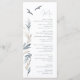 Add a touch of coastal elegance to your wedding reception with this nautical menu card. Featuring hand-drawn foliage accents on the side and graceful silhouettes of seagulls in flight, this card sets the tone for a seaside celebration. Flip to the back to reveal classic nautical stripes in bluish-grey. This menu card is the perfect blend of a relaxed atmosphere and coastal charm.