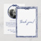 Celebrate your love with a touch of the sea! This charming thank you card is perfect for a casual coastal wedding celebration. It features a beautiful watercolor stripes background that evokes the tranquil hues of the ocean. Framed by a rustic rope design, complete with a knot and anchor, it perfectly captures the essence of tying a knot and anchoring each other in marriage. Ideal for a beach or seaside wedding, this thank you card invites your guests to join you for a day filled with love and joy by the waves. Add your photo and customize the information.