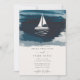 Coastal Navy Ocean Beach Sail Boat Elegant Wedding Invitation