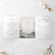 Announce your coastal celebration with this elegant tri-fold wedding invitation, complete with all-in-one details and an RSVP postcard for guests to detach. Adorned with a serene New England beach landscape and hand-drawn foliage in muted colors, this invitation captures the tranquil beauty of the seaside. Personalized with the bride and groom's names and date, along with a timeless anchor design, it's the perfect way to set the tone for your coastal wedding.