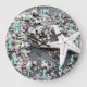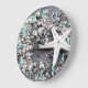 Beautiful print made up of tons of seashell bits and rocks, and featuring a white starfish! Perfect for the beach lover, nautical theme, or a summer pattern. Has a bit of a black and white vibe because of the colors. Change out the numbers to make it your own! Nautical White Starfish Shell Gray Sand Beach Large Clock