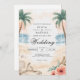 A serene beach scene unfolds with gentle waves and sandy shores, framed by graceful palm trees. This design evokes a relaxed, sun-kissed atmosphere perfect for an oceanfront union. Its soft watercolor palette creates a dreamy and romantic ambiance.