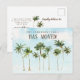 Modern moving announcement featuring a beautiful watercolor tropical palm trees. Flip our moving announcement over to view a coordinating back for an extra special touch.