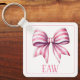Coastal Pink and White Watercolor Bow Monogram Keychain