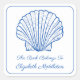 This coastal inspired bookplate sticker features a classic blue and white scallop seashell on a background of solid white. Personalize with your choice of special text.