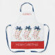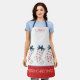 This cute coastal inspired personalized holiday apron features classic Christmas stockings with red crabs on white and a dark blue bow on top. Personalize with your choice of name and special text. Great for a holiday hostess gift.