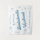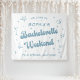 Welcome your bride tribe to a weekend of fun with this customizable dusty blue bachelorette party tapestry. Featuring a stylish design with a personalized name, location, and date, this eye-catching wall hanging will set the perfect celebratory tone for your bachelorette weekend. With its chic colors and playful details like martini glasses and seashells, this tapestry adds a touch of glamour and excitement to any party space. Create a lasting memory with this unique and personalized keepsake.