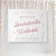 Welcome your bride tribe to a weekend of fun with this customizable pink bachelorette party tapestry. Featuring a stylish design with a personalized name, location, and date, this eye-catching wall hanging will set the perfect celebratory tone for your bachelorette weekend. With its chic colors and playful details like martini glasses and seashells, this tapestry adds a touch of glamour and excitement to any party space. Create a lasting memory with this unique and personalized keepsake.