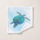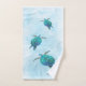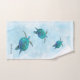 This personalized coastal towel set features colorful sea turtles with abstract watercolor ocean waves in the background.
