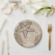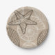 Coastal sealife starfish and shells in beige paper plates