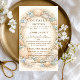 A refined coastal wedding design featuring an elegant oval wreath of seashells, oyster shells, starfish, and soft sea glass accents. Neutral sandy tones blend with muted ocean blues and delicate dune grasses to create a serene seaside aesthetic. The warm parchment background enhances the natural textures while maintaining a timeless, elevated feel. Perfect for a romantic beach celebration with classic coastal charm.