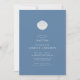 Elegant baptism invitation design featuring a hand-painted blue and white shell on a deep blue background that creates a timeless, coastal feel—perfect for classic, minimalist, seaside-inspired baptisms. The shell represents an old baptism symbol that was used to pour the water.