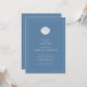 Elegant baptism invitation design featuring a hand-painted blue and white shell on a soft blue background. Subtle blue-beige stripes add depth, while the mix of sans-serif and decorative serif typography creates a timeless, coastal feel—perfect for classic, minimalist, seaside-inspired baptisms. The shell represents an old baptism symbol that was used to pour the water.