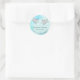 Thank you business sticker with silver turtles on a blue turquoise in background.