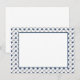 This flat note card is shown in a navy blue and white coastal starfish print.