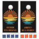 Natural Wood Cornhole Set, Royal Blue and Yellow bags