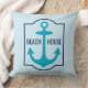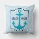 Coastal Teal Anchor Beach House Location Throw Pillow