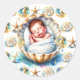Coastal Themed Beachy Boy's Baby Shower Classic Round Sticker
