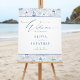This elegant timeless coastal wedding welcome sign foam board features delicate script calligraphy and a seaside toile de jouy pattern of hand drawn lighthouses, sailboats, and ocean waves, reminiscent of summer on the New England coast.