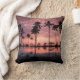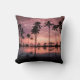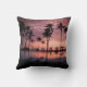 Coastal Tropical Beach with Palm Trees and Sunset Throw Pillow