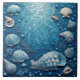 Coastal Underwater Seashell Fish Ocean Bubble Blue Ceramic Tile