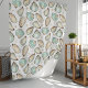 This coastal cool shower curtain for your beach house, patio, or salty abode features a pattern of soft cream and aqua watercolor oyster and pearl illustrations.