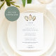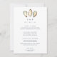 Share your wedding reception menu details in elegant style with these coastal wedding menus in white with navy lettering and a trio of aqua and ivory watercolor oyster shell illustrations. Add your initials and wedding date to the top, then customize the menu items arranged by course.