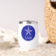 Coastal White Starfish on Navy Blue Monogram Thermal Wine Tumbler