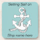 White Anchor with rope against a background color you Customize with your choice. Text reads "Setting Sail on" at top, at bottom, Personalize the text with your ship's name.