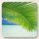 Coaster set shown with a photo print of a beautiful tropical beach with palm scene. Customize this item or buy as is. Stock Image