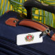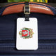 Luggage Tag with design with coat of arms of Vilnius, capital city of Lithuania; with illustration of saint Christopher and infant Jesus