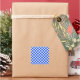 A blue and white checkerboard pattern with alternating squares fills the image, creating a geometric, balanced design with a classic, symmetrical feel.