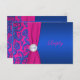 This pink and blue floral damask RSVP card has a PRINTED ribbon and jeweled medallion with a spot for your initial on it. It matches the wedding invitation shown below. The text and paper choices are fully customizable. If you require any matching items, such as enclosure cards, thank you cards, programs etc. please email your request to niteowlstudio@gmail.com.
