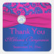 This monogrammed cobalt blue and fuchsia pink damask thank you wedding favor sticker or envelope seal has a FAUX ribbon and jewelled silver medallion on it with a spot to add your initial. It matches the wedding invitation shown below. You can change the text to say whatever you want, and you can also change the sticker size and/or shape and use it on your wedding favors. If you require any other matching items in this design, please email your request to niteowlstudio@gmail.com.