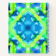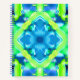 Journal in a tie dye pattern in shades of cobalt blue, turquoise, and lime green, accented with white