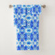 Cobalt Blue and White Batik Tile Pattern Bath Towel Set