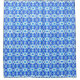 Shower curtain in a batik effect, tilled pattern, with abstract floral elements, in shades of denim, cobalt and sky blue against a white background