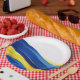 • Wedding paper plates featuring the Cobalt Blue & Lemon Yellow wave design