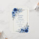 Invite your guests to a celebration of pure elegance with this striking botanical composition. The design is anchored by lush corner arrangements of cobalt blue bloom and delicate azure petal clusters, each meticulously detailed with fine, shimmering gold veins. A minimalist gold line frame provides a modern, sophisticated focal point against a clean, white textured background that mimics high-end artisanal paper. Graceful sprays of blue leaf sprig and buds trail elegantly from the corners, adding organic movement and grace. This wedding invitation is an exquisite choice for a seaside ceremony, a chic winter celebration, or a sophisticated garden-themed event. It ensures your event details are presented with a sense of high-end clarity and natural beauty from the moment guests open the envelope.