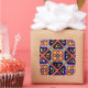 A unique cobalt blue and burnt orange southwestern design that looks like ceramic tile, but it is a printed design. Available on a variety of unique novelty gifts.