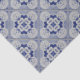 Diagonal repeating pattern of ornate ceramic tile in cobalt blue - European style with abstract flourishes and greek key motifs