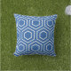 Cobalt Blue hexagonal geometric trellis pattern pillow for outdoors. Made in the USA. High quality twill pattern print. UV and mildew resistant garden or patio pillows in with modern designs in bright summer colors. Available in 16 or 20 inch square and 13 by 21 rectangular sizes. Insert included. (Also available as an interior couch or sofa throw pillow, just select cotton or polyester from the Fabric tab).