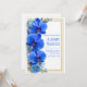 Welcome your guests to a celebration of bold elegance with this striking botanical masterpiece. The design features a stunning vertical trio of vibrant cobalt blue orchids, each petal meticulously detailed with deep sapphire veining and delicate golden highlights. Shimmering gold sprigs and smaller azure blossoms accent the lush arrangement, all framed by a sophisticated double-line gold border. Set against a clean, textured white background, this composition offers a high-contrast, luxurious aesthetic that is both modern and refined. This is a premier choice for a royal blue and gold wedding, a sophisticated beachfront ceremony, or an elegant formal reception. Its bold jewel tones make it a stunning match for upscale gallery venues, modern city hotels, or classic ballroom celebrations where a high-contrast botanical aesthetic takes center stage. Whether you are hosting a summer garden event or a grand evening gala, these vibrant orchids set a tone of prestige and artistic sophistication for your special day.