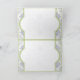 This vintage inspired wedding collection has a complete ensemble of products. This design consists of a detailed vintage carved etching pattern that has been made into the background. It has a toile damask feel to it. The gentle lime green border on a quatrefoil central design and outer edging give it a contemporary essence and unpredictability. The artwork was painted in antiquity and rearranged into a pleasing color palette and layout. A beautiful blue fringed iris, forget-me-nots, white hydrangeas and delightful small white and black butterflies complete the image. Inside there is a matching toile damask edged design with lots of room for writing.