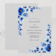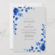 This elegant design features vibrant cobalt blue watercolor anemones blooming against a soft, light gray backdrop. The cool color palette evokes a crisp winter atmosphere, perfect for a sophisticated seasonal event. Delicate painted petals and deep blue foliage create a graceful border that feels both modern and timeless.