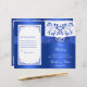 This romantic 8.5"x11" cobalt blue and white floral wedding program has a PRINTED ON ribbon and bow with a pair of PRINTED diamond jewel and FAUX blue glitter