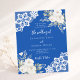 For an elegant and romantic wedding. A cobalt blue colored background decorated with white florals, roses and white lace. Personalize and add your names and details.
