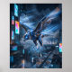 Fast, sleek, and elite, this cobalt falcon artwork captures a futuristic predator diving through the night sky with cobalt alloy plating, carbon-fiber wings, glowing blue eyes, and razor-sharp aerodynamic detail. Below, a neon skyline glows with skyscrapers, holographic lights, transit lanes, and atmospheric haze. Motion trails and dramatic depth create thrilling speed and precision. Ideal for gaming rooms, offices, and modern interiors. Perfect for fans of cyber style, birds of prey, and futuristic décor.